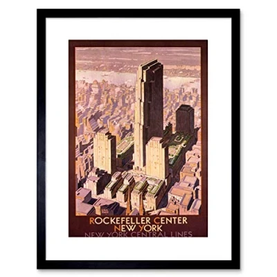 Wee Blue Coo 9x7 '' TRAVEL ROCKEFELLER NEW YORK RAIL TRAIN VINTAGE FRAMED ART PRINT F97X1306