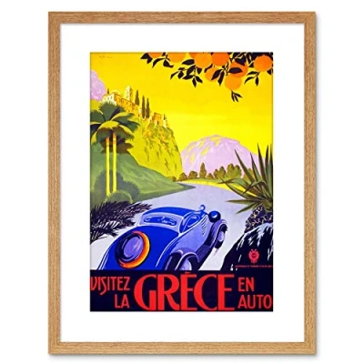 Wee Blue Coo 9x7 '' TRAVEL VISIT GREECE BY CAR SUN FRANCE VINTAGE FRAMED ART PRINT F97X1535