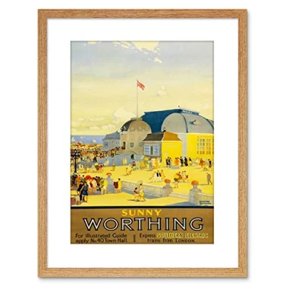Wee Blue Coo 9x7 '' TRAVEL WORTHING SUSSEX PAVILION THEATRE SEA SUN FRAMED ART PRINT F97X1492