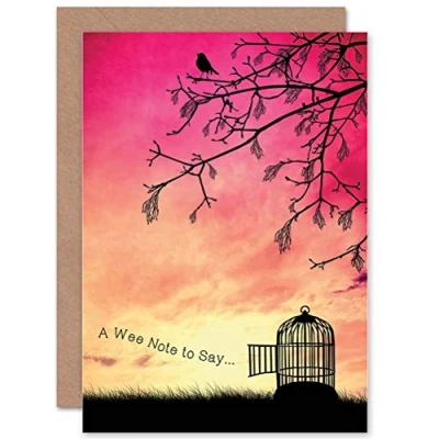 WEE Blue Coo A NOTE TO SAY BIRD CAGE PINK SUNSET FREEDOM SILHOUETTE GREETINGS CARD