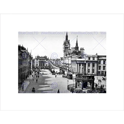 Wee Blue Coo Aberdeen Castle Street And Municipal Buildings Scotland Old BW Art Wall Print
