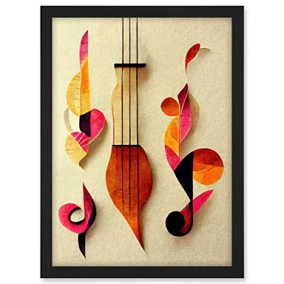 Wee Blue Coo Abstract Autumnal Boho Music Clefs and Lyra Musical in Cream Copper Pink Yellow Artwork Framed A3 Wall Art Print