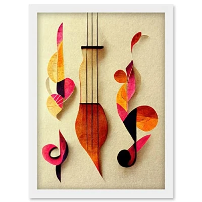 Wee Blue Coo Abstract Autumnal Boho Music Clefs and Lyra Musical in Cream Copper Pink Yellow Artwork Framed Wall Art Print A4