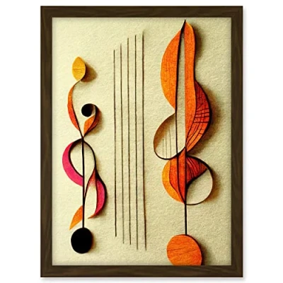 Wee Blue Coo Abstract Autumnal Boho Music Clefs and Staff Musical Cream Copper Pink Yellow Artwork Framed A3 Wall Art Print