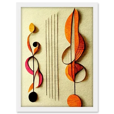 Wee Blue Coo Abstract Autumnal Boho Music Clefs and Staff Musical Cream Copper Pink Yellow Artwork Framed A3 Wall Art Print