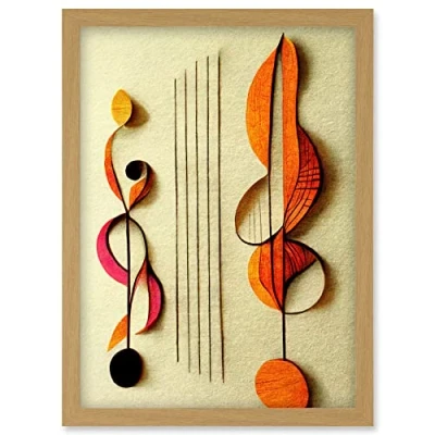 Wee Blue Coo Abstract Autumnal Boho Music Clefs and Staff Musical Cream Copper Pink Yellow Artwork Framed Wall Art Print A4
