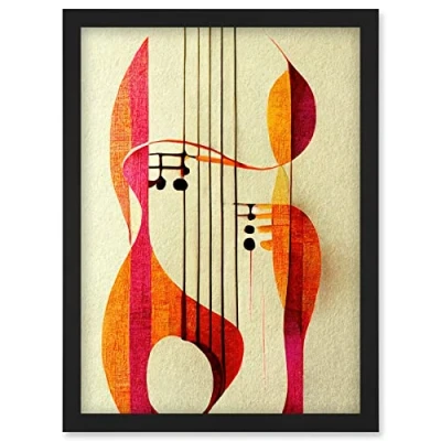 Wee Blue Coo Abstract Autumnal Boho Musical Music Symbol Clef in Cream Pink Copper Yellow Artwork Framed Wall Art Print A4