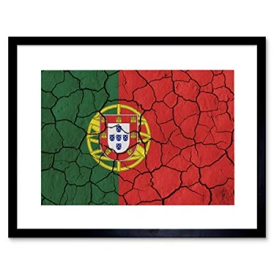 Wee Blue Coo Abstract Flag Cracked Concrete Portugal Portuguese Crest Framed Wall Art Print