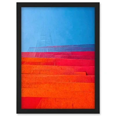 Wee Blue Coo Abstract Minimalist Steps Painting Purple Pink Orange Red Artwork Framed Wall Art Print A4
