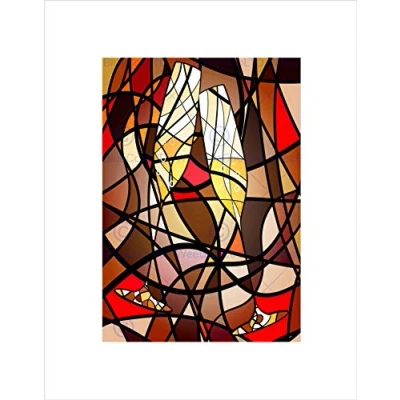 Wee Blue Coo Abstract Mosaic Pattern Champagne Glasses Stained Glass Wall Art Print