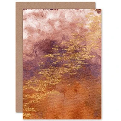 Wee Blue Coo Abstract Orange Purple Gold Watercolour Greeting Card With Envelope Inside Premium Quality