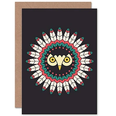 Wee Blue Coo ABSTRACT OWL FACE NATIVE AMERICAN DESIGN BLANK GREETINGS BIRTHDAY CARD