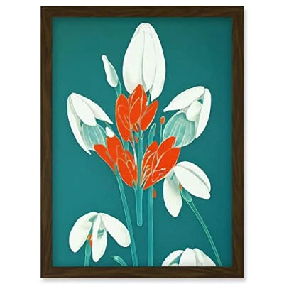 Wee Blue Coo Abstract Snowdrops Red Flowers on Teal Retro Mid Century Style Artwork Framed Wall Art Print A4