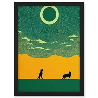 Wee Blue Coo Abstract Wolves Minimalist Surreal Sky Green Yellow Artwork Framed A3 Wall Art Print