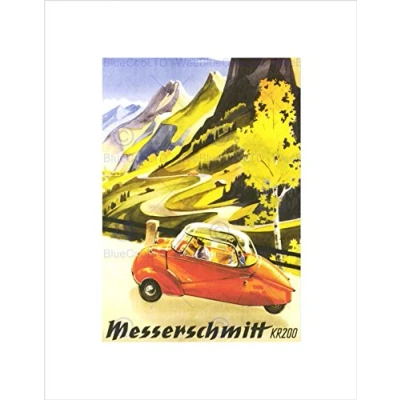 Wee Blue Coo Ad Car Automobile Messerschmitt KR200 Bubble Germany Wall Art Print