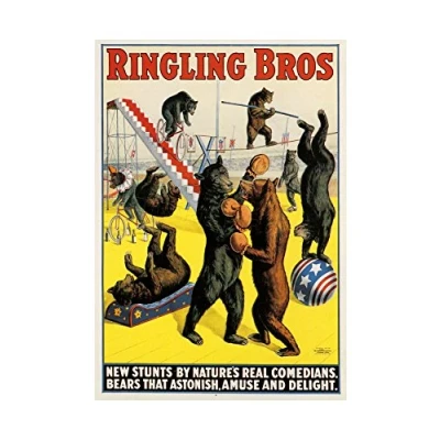 Wee Blue Coo Ad Circus Ringling Bros Bears Box Stunt Wall Art Print