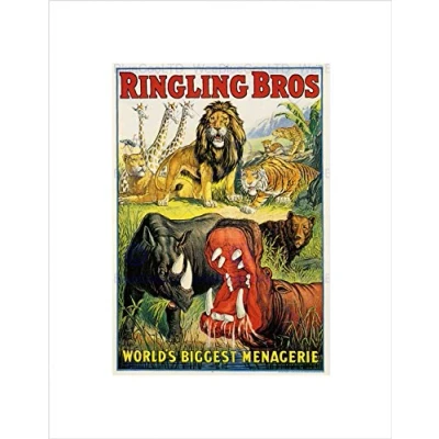 Wee Blue Coo Ad Circus Ringling Bros Lion Hippo Rhino Menagerie Wall Art Print