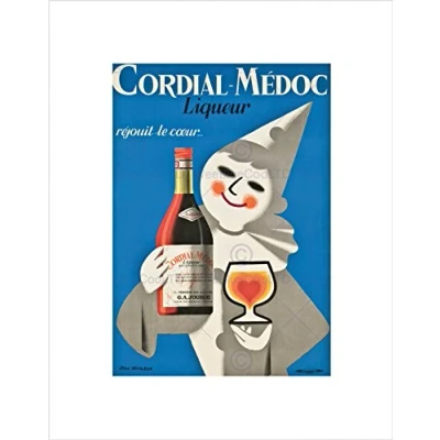 Wee Blue Coo Ad Drink Alcohol Liqueur Heart Glass Clown Pierrot France Art Wall Print