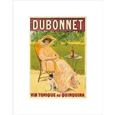 Wee Blue Coo Ad Drink Alcohol Tonic Wine Quinine Lady Garden Dog France Art Wall Print