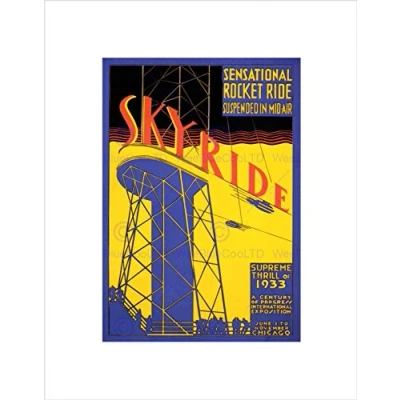 Wee Blue Coo Ad Exhibition Fairground Ride Rocket Chicago Skyride Wall Art Print