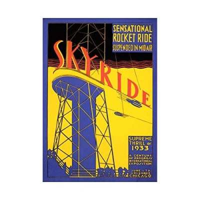 Wee Blue Coo Ad Exhibition Fairground Ride Rocket Chicago Skyride Wall Art Print