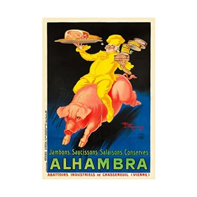 Wee Blue Coo Ad Food Alhambra Ham Sausage Pork Pig Chef France Wall Art Print