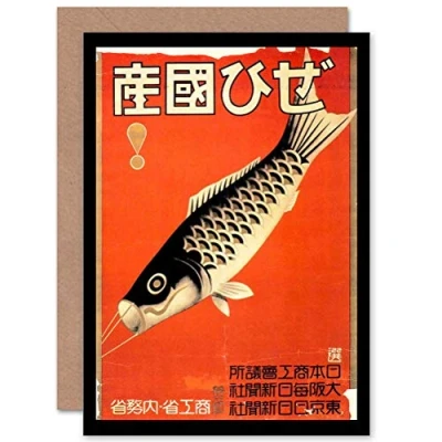 Wee Blue Coo AD HOBBY EQUIPMENT KITE FLYING FISH RETRO JAPAN GREETINGS CARD