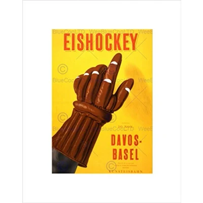 Wee Blue Coo Ad Ice Hockey Match Basel Davos Sport Glove Switzerland Wall Art Print
