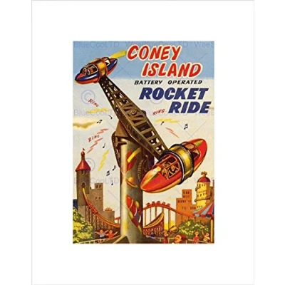 Wee Blue Coo AD TOY FAIRGROUND RIDE CONEY ISLAND ROCKET CHILDREN PRINT B12X6022