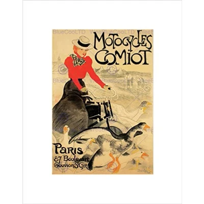 Wee Blue Coo Ad Transport Motocycle Comiot Goose Geese Paris France Wall Art Print