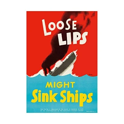 Wee Blue Coo Ad War WWII USA Loose Lips Sink Ships Torpedo Wall Art Print