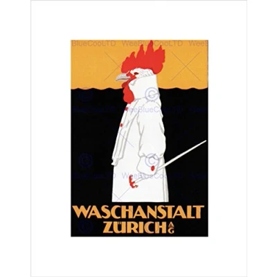 Wee Blue Coo Ad Washing Laundry Rooster Zurich Switzerland Wall Art Print