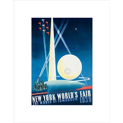 Wee Blue Coo Ad World Fair 1939 New York City Sphere Plane Star Wall Art Print