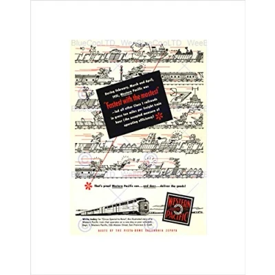 Wee Blue Coo Advert 1950s Train Western Pacific Cartoon Railroad Wall Art Print