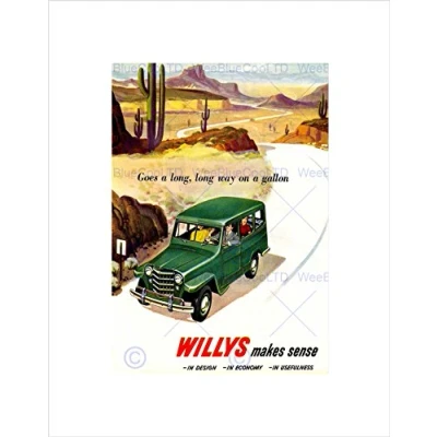 Wee Blue Coo Advert Car Automobile Classic Desert Cactus Willys USA Wall Art Print