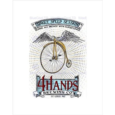 Wee Blue Coo Advert Drink Alcohol Blonde Ale Penny Farthing Wings Wall Art Print
