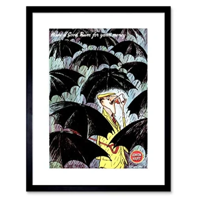 Wee Blue Coo Advert Drink Alcohol Rum Rain Umbrella Rush Hour Framed Wall Art Print
