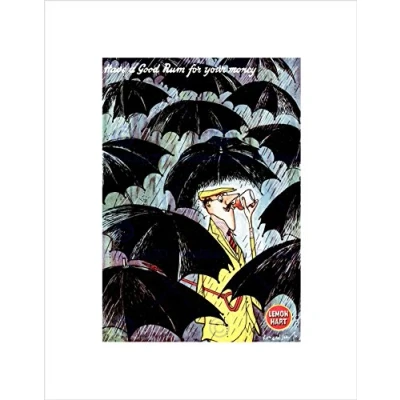 Wee Blue Coo Advert Drink Alcohol Rum Rain Umbrella Rush Hour Wall Art Print
