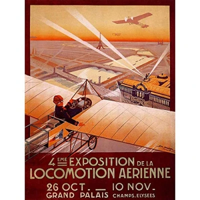 Wee Blue Coo Advert Exhibition Airshow Airplane Paris Spotlight Eiffel France Art Print Poster Wall Decor 12X16 Inch