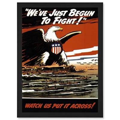 Wee Blue Coo Advert Military WWII War World USA American Eagle Just Begun Fight Navy Air Force Artwork Framed Wall Art Print A4