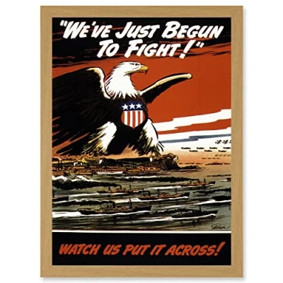 Wee Blue Coo Advert Military WWII War World USA American Eagle Just Begun Fight Navy Air Force Artwork Framed Wall Art Print A4