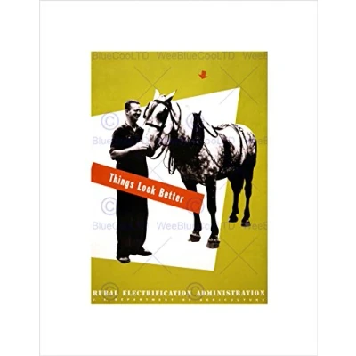 Wee Blue Coo Advert Rural Electricity Farm Horse USA Picture Wall Art Print