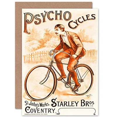 Wee Blue Coo ADVERT TRANSPORT PSYCHO CYCLES COVENTRY UK BLANK GREETINGS CARD