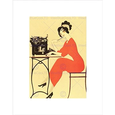 Wee Blue Coo Advert Typewriter Woman Red Dress Writing USA Wall Art Print