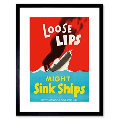 Wee Blue Coo Advert War WWII Loose Lips Sink Ships Torpedo Framed Wall Art Print