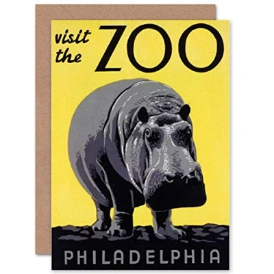 Wee Blue Coo ADVERT ZOO PHILADELPHIA USA HIPPOPOTAMUS BIRTHDAY BLANK GREETINGS CARD