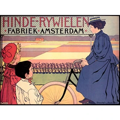 Wee Blue Coo Advertising Fabric Woman Bike Kids Field Amsterdam 30X40 Cms Fine Art Print Poster Bb7408