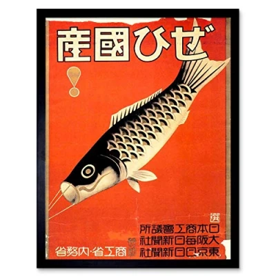 Wee Blue Coo Advertising Hobby Equipment Kite Flying Fish Retro Vintage Japan Art Print Framed Poster Wall Decor 12X16 Inch