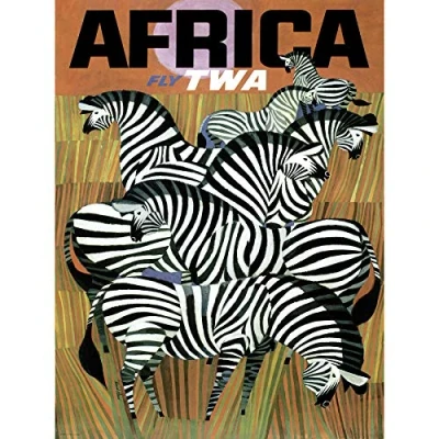 Wee Blue Coo Africa Travel TWA Airline Zebra Large Wall Art Poster Print Thick Paper 18X24 Inch