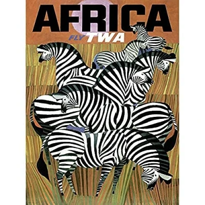 Wee Blue Coo Africa Travel Twa Airline Zebra Unframed Art Print Poster Wall Decor 12X16 Inch